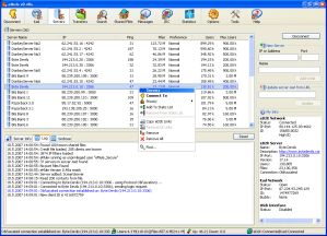 El diálogo de servidores muestra toda la información sobre los servidores de tu lista, el servidor al que estás conectado y además contiene controles para añadir servidores por su IP o descargando una lista.