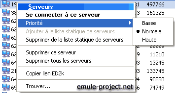 La priorité établit quel serveur eMule doit préférer lors de la connexion.