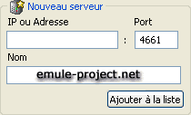 Entrez l'IP et le nom d'un serveur, afin de l'ajouter à votre liste. Si le journal adresse le message : Serveur non ajouté !, c'est que celui-ci se trouvait déjà dans votre liste..