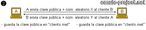 Cuando dos clientes que soportan encriptación intercambian datos por primera vez, ambos se envían una clave pública con un valor aleatorio. Cada uno almacena la clave del otro en su archivo clients.met. Sólo la clave es guardada, el valor aleatorio es generado de nuevo en cada conexión.