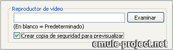 Los valores por defecto que se establecen al instalar eMule son los que se muestran en la imagen, que pertenece al menú de Preferencias -> Archivos. Tan sólo pulsa con el botón derecho del ratón en el archivo y elige Previsualizar. eMule creará un archivo temporal en la carpeta "temp" y lo abrirá con el reproductor multimedia asociado.