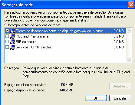 abaixo, certifique-se de que ' Serviços UPnP' estão