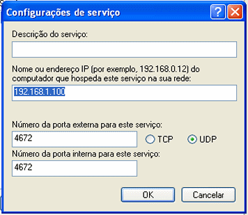 enviar o tráfego de entrada para as portas 4662 e 4672 em