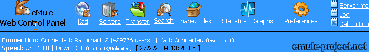 O acesso para quase todas as funções do eMule é fornecido neste servidor web. Todos as mudanças afetarão diretamente o eMule no PC servidor.